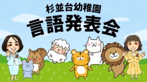 杉並台幼稚園 言語発表ポータルTOP Twitter Facebook はてブ Pocket LINE コピー 2026.02.132023.02.12 SuginamidaiKindergartenLanguagePresentation ① 「絵を見てイメージしてみましょう」 どんな言葉が使ってあるかな?どんな様子が思い浮かぶかな?② 「先生と読んでみましょう」 先生が読むのを聞いて、声に出して読んでみましょう。③ 「おうちの方と読んでみましょう」 おうちのかたが一行読んで、同じところをこどもが読んでみましょう。④ 「ひとりで読んでみましょう」 自分で声に出して読んでみましょう。 タップすると動画が再生されます 『言葉は心を伝える大切なもの』 言葉は心を伝える大切なもの CONTACT US 杉並台幼稚園 〒861-1112熊本県合志市幾久富1656-485TEL 096-248-4555 杉並台幼稚園ホームぺージタップすると別ウィンドウで開きます